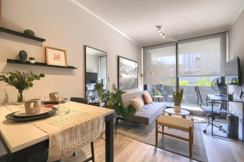 Vive a pasos de la estación de metro Republica (L1). Edificio Abdón Cifuentes 150 cuenta con lavandería, gimnasio, salón gourmet, cowork, quinchos. Administrado con el prof...